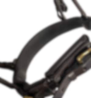 Detta är ett brunt rundsytt Munchen Feel Good kandar med det lite bredare välpaddade nackstycket som benämns just med Feel Good för att det har en mjukare anläggning mot hästens nacke. Nosgrimman på detta kandar är i modellen Comfort XS 5 cm, vilket innebär att nosgrimman är 5 cm på den bredaste punkten och avsmalnande mot sidorna där hästen har som minst plats vid bettet, nosgrimmans stängning är tillbakaknäppt. Det unika med denna nosgrimma är också att insidan (paddningen) inte har några sömmar, vilket gör nosgrimman oerhört mjuk.