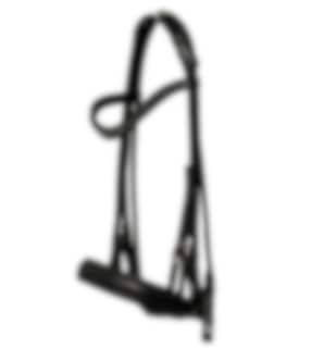 Detta är ett svart rundsytt München kandar med en 4 cm wide välpaddad nosgrimma ton i ton som är tillbakaknäppt. Det vackra bågformade pannbandet är dekorerat med 12 mm stora äkta Swarovski kristaller Tiffany XL i färgen Silver Night.
