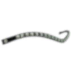 Rivoli är ett elegant, bågformat pannband som kombinerar förstklassigt läder med Swarovski®-kristaller i modellen Rivoli (10 mm) i den sofistikerade nyansen Black Diamond. Den djupa svarta nyansen ger ett diskret skimmer och en exklusiv karaktär som framhäver pannbandets eleganta design. De silverfärgade infattningarna framhäver kristallernas djup och lyster och skapar en harmonisk kontrast mot det svarta lädret.