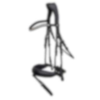 Den rundsydda designen ger tränset ett mjukt och elegant uttryck med tydlig dressyrkaraktär, medan det svängda pannbandet med stora kristaller tillför en exklusiv och sofistikerad detalj.