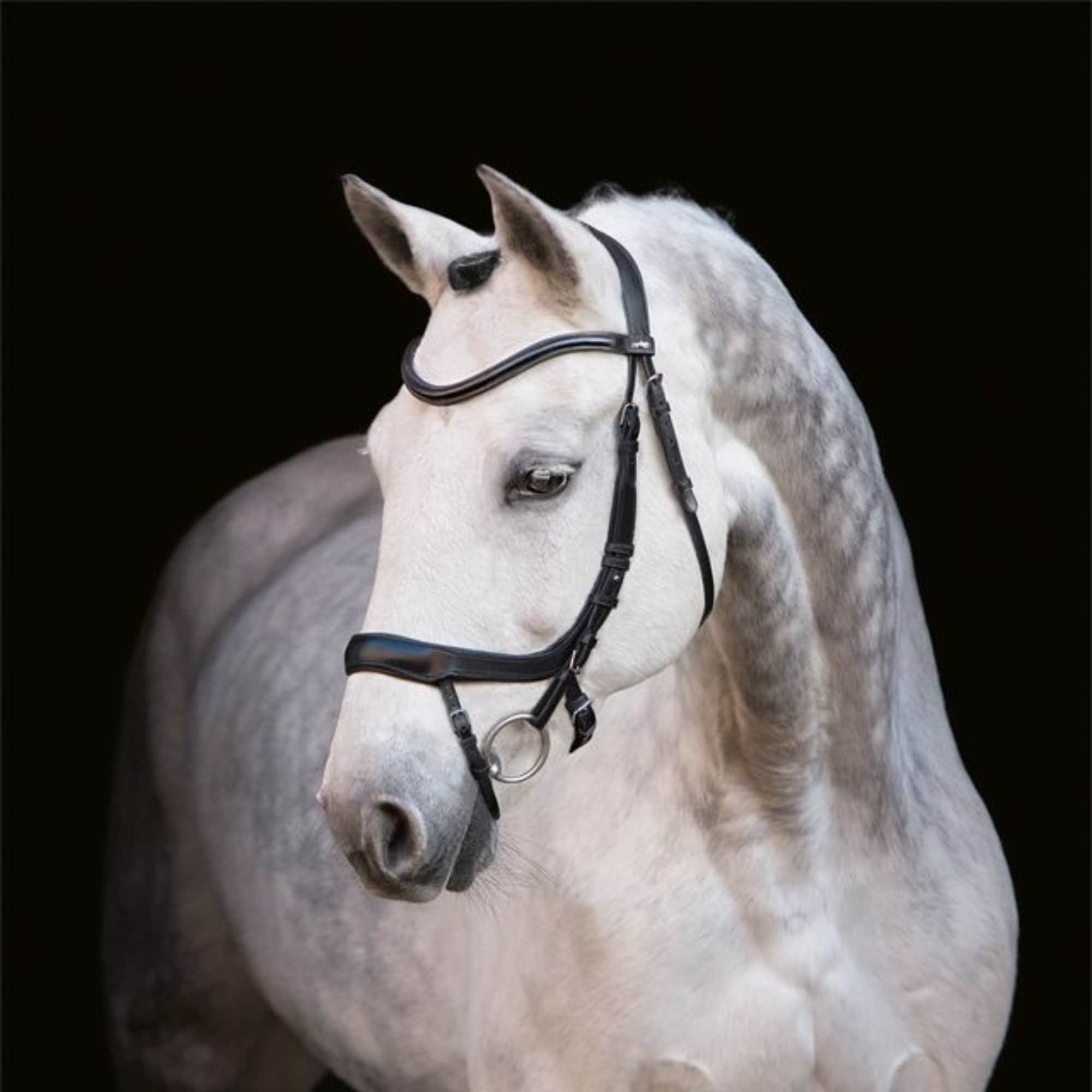 Det mjukt vadderade nackstycket är ergonomiskt format för att avlasta nacken och ge god komfort även vid längre ridpass. Sidstyckena fästs direkt i nosgrimman vilket ger en stabil konstruktion och gör tränset enkelt att justera.