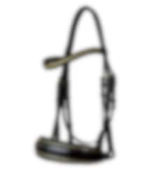 Det svarta Comfort XS kandaret har ett anatomiskt smalt nackstycke som är utformat för att vara extra mjukt för att få en mjukare anläggning mot hästens nacke. I kombination med Comfort XS nosgrimma med extra mjuk paddning och guld piping blir det här ett nätt, superelegant och komfortabelt träns.