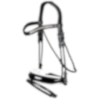 Dyón Dressage Collections rundsydda träns levereras med pannband med stenar av strass.
