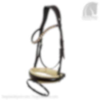 Detta är ett vackert träns i modellen Tokyo som har en bredare mjukt paddat ergonomiskt nackstycke, nosgrimman är en tillbakaknäppt Comfort XS modell med extra bred sandfärgad padding gör det här tränset till något alldeles extra.