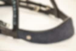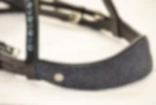 Detta är ett svart träns med ett läder av toppkvalité med exklusiva detaljer i form av mörkblått glitter på nosgrimman och nackstycket. Nackstycket är ergonomiskt och verkligen mjukt med en ovansida dekorerad med Crysal Fabric i Montana blått. Nosgrimman är en Comfort XS 5 cm, vilket innebär att nosgrimman är bredast längst fram och smalnar av mot sidorna där hästen har som minst plats vid bettet, nosgrimmans stängning är tillbakaknäppt. Även nosgrimman är dekorerad med en bred piping med Crystal Fabric i samma Montana Blue färg som på nackstycket.