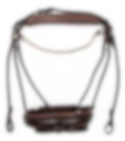 Finesse Cassidy & Catherine Dufour rundsytt träns i brun färg med beige paddning och mässingsspännen.