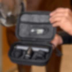 Fästet för massagehuvudet kan kombineras flexibelt med samtliga tillbehör. Transportväska ingår.