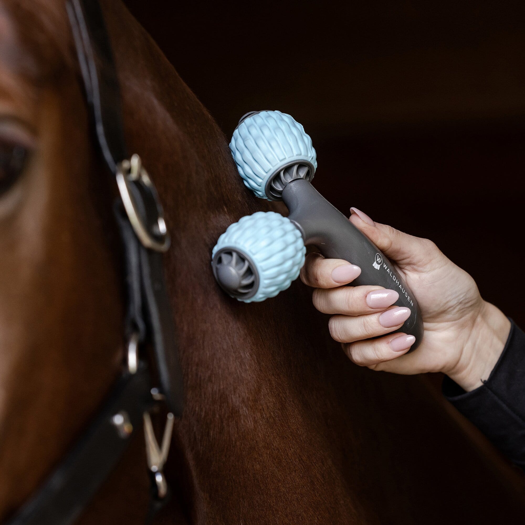 Waldhausen Health & Care massage­rullar erbjuder ett enkelt och effektivt sätt att ge hästen en avslappnande massage, helt utan elektronik. Tack vare rullarnas speciella struktur kan utvalda muskelområden bearbetas och spänningar lindras. Det ergonomiska handtaget ger ett bekvämt och säkert grepp, och rullarna är särskilt anpassade för hästens större, mjuka muskelpartier.