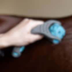 Den ergonomiska formen gör den enkel att arbeta med på olika delar av kroppen och kombinerar flera massageelement för en effektiv och heltäckande behandling.