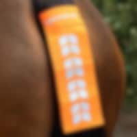 Reflexbenskydd i neopren för häst. Ge din häst extra synlighet och skydd med dessa slitstarka neoprenbenskydd med reflexdetaljer. Orange