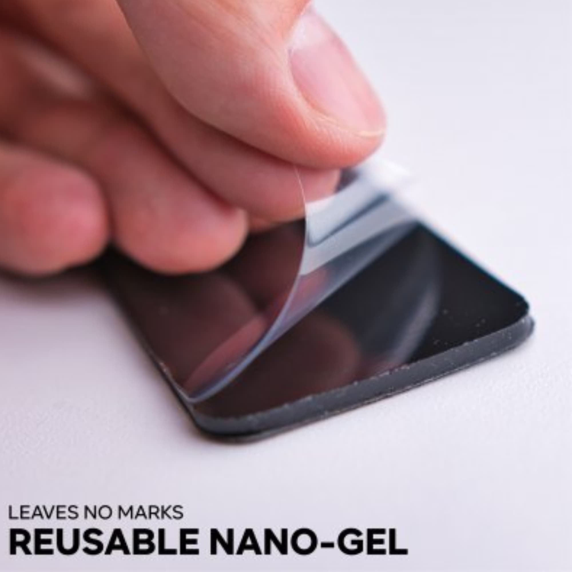 Fästlapp till Light 01. Säker och mångsidig: Baksidan är täckt med Nano-Gel, som fäster på de flesta ytor utan att lämna märken.