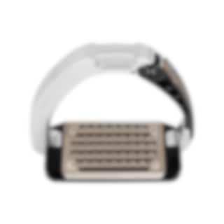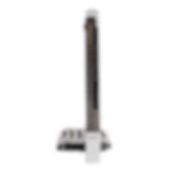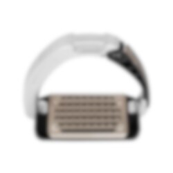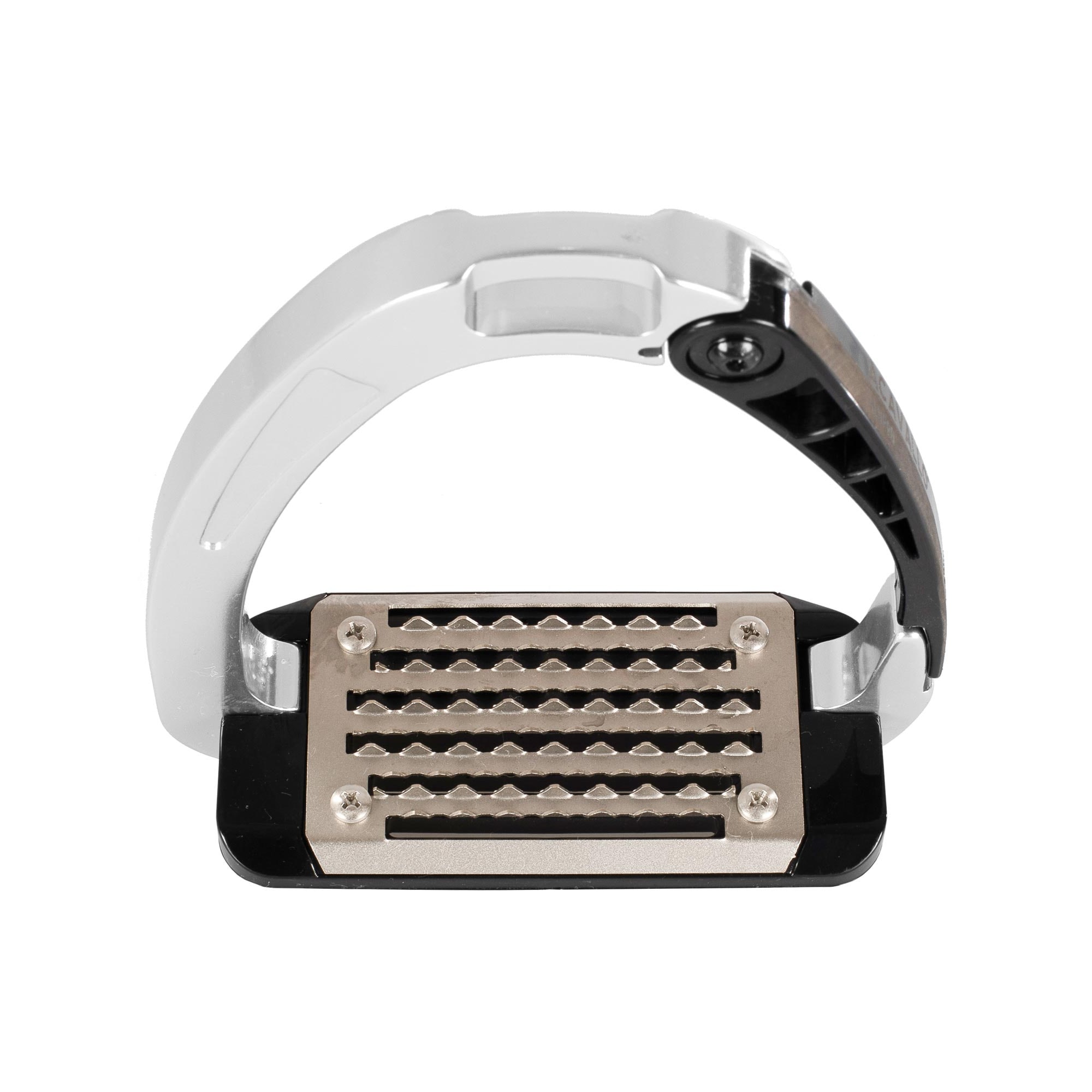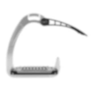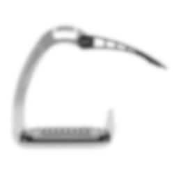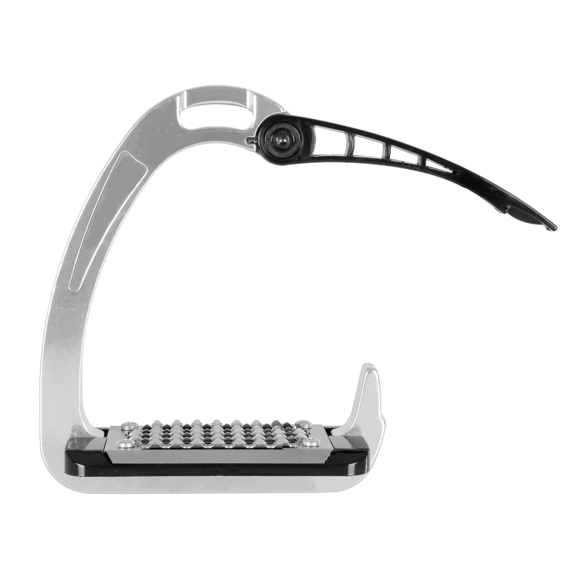 Stigbygeln är tillverkad i en avancerad kombination av anodiserad aluminium, rostfritt stål och flexibla polymerer. Den robusta bågen i metall ger stabilitet, medan den rörliga armen i polyamidmaterial gör stigbygeln mer följsam och mindre stel jämfört med traditionella modeller.