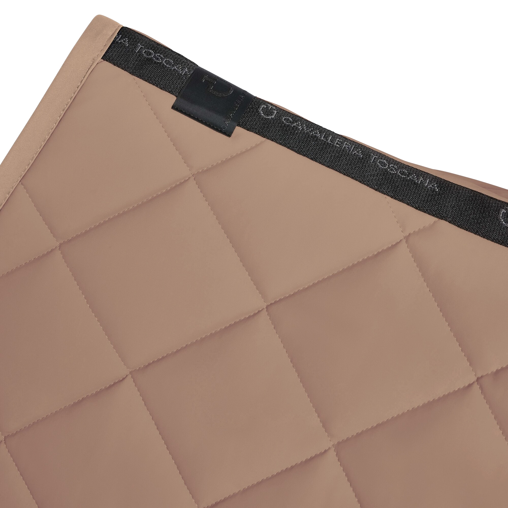 Cavalleria Toscana Diamond Quilted Hoppschabrak är tillverkat av högkvalitativa material och designat med diamantquiltning som ger jämn tryckfördelning och en bra passform. Schabraket har en innovativ 3D-honeycomb-struktur i bomull som formar sig efter hästens rygg, ger god andningsförmåga och har ett antibakteriellt material, vilket håller schabraket fräscht under en längre tid.