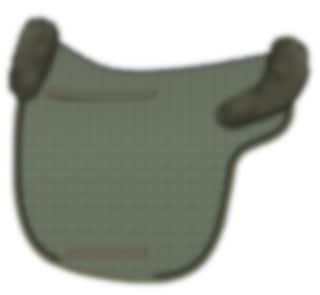 Underbart fint fårskinnsschabrak i islandshästmodell med olivfärgat lammskinn från EA Mattes som används för tryckavlastning under sadeln och för att förhindra och lindra skav.