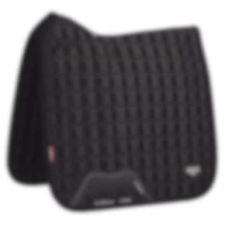 Det 100 % naturliga bambumaterialet kontrollerar värme och svett och transporterar mycket effektivt bort fukten från hästen. Schabraket har berikats med ett kantband som är av ett utsökt mjukt friktionsfri mockaliknande material som är speciellt tillverkad för att smidigt följa kanterna. Denna nya teknik hjälper till att bibehålla den perfekta sadelskurna formen. Där schabraket slits mest vid sadelgjorden finns ett PU-lädermaterial som skyddar dressyrschabraket från slitage.