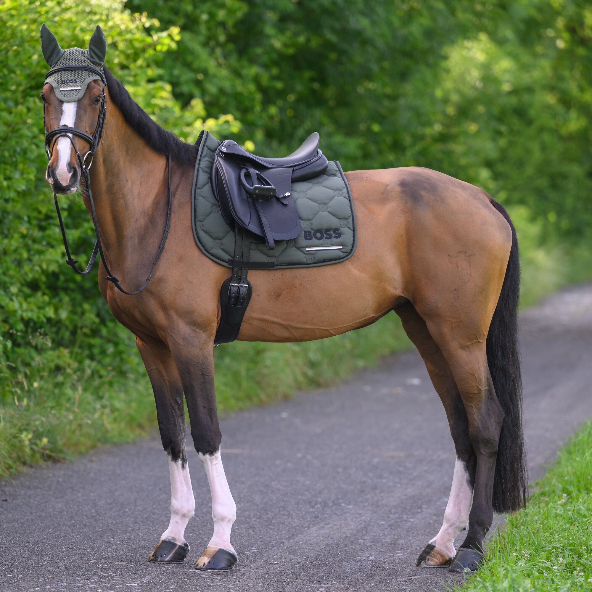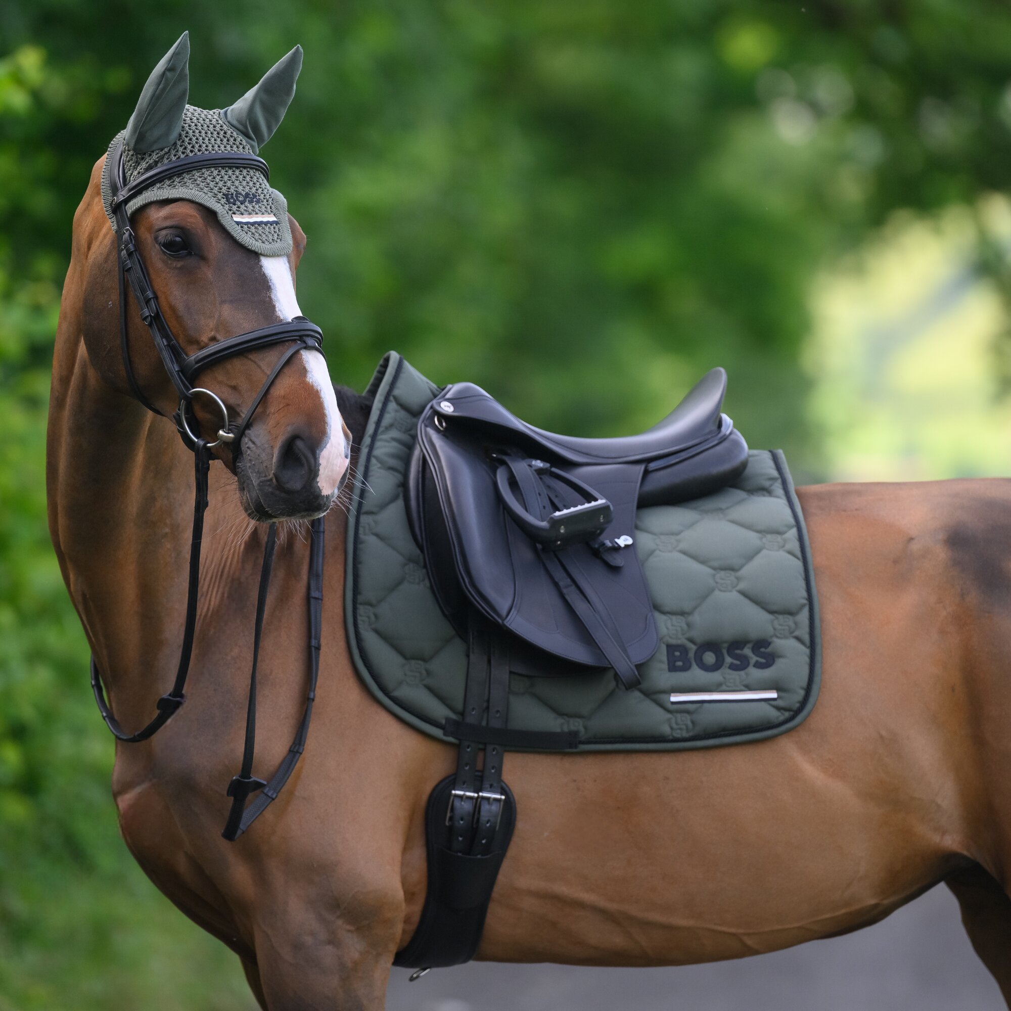 Detta exklusiva dressyrschabrak från BOSS Equestrian är tillverkat i en slitstark materialmix med quiltningen utformad i det ikoniska Double B-mönstret och kommer med BOSS klassiska logotyp tillsammans med deras klassiska signaturrand undertill.