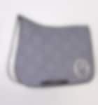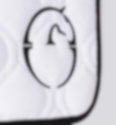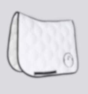 Detta schabrak är vitt med marin kantband samt marin logga. Perfekt när du och din häst ska på tävling!