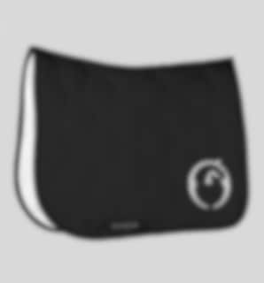 Detta schabrak är svart med en svart kant samt ljus logga. Perfekt när du och din häst ska vara extra snygga!