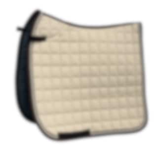 Dressyrschabraket har stor quiltning (5x5cm) och är förstärkt med mjuk teddy i manken för att förebygga skav. Dressyrschabraket från Mias RS är i en härlig Sand färg med brun kantband. Dressyrschabraket är försedd med två snurror som löper längst hela schabraket, en i brun och en i creme. Liksom alla dressyrschabrak från Mias RS håller detta hög kvalité och passform.