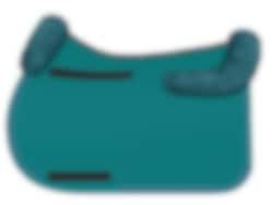 Underbart fint fårskinnsschabrak med grönblått lammskinn från EA Mattes som används för tryckavlastning under sadeln och för att förhindra och lindra skav.