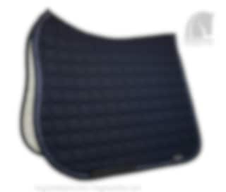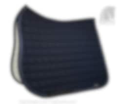 Superelegant marinblått dressyrschabrak med smal glittrig marinblå passpoal-band, octagonquiltat från Equiline.