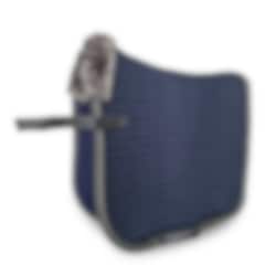 Dressyrschabraket följer Show-Line-serien med en iögonfallande kontrastarenade piping i grått som bryter av snyggt mot schabrakets marinblå färg.