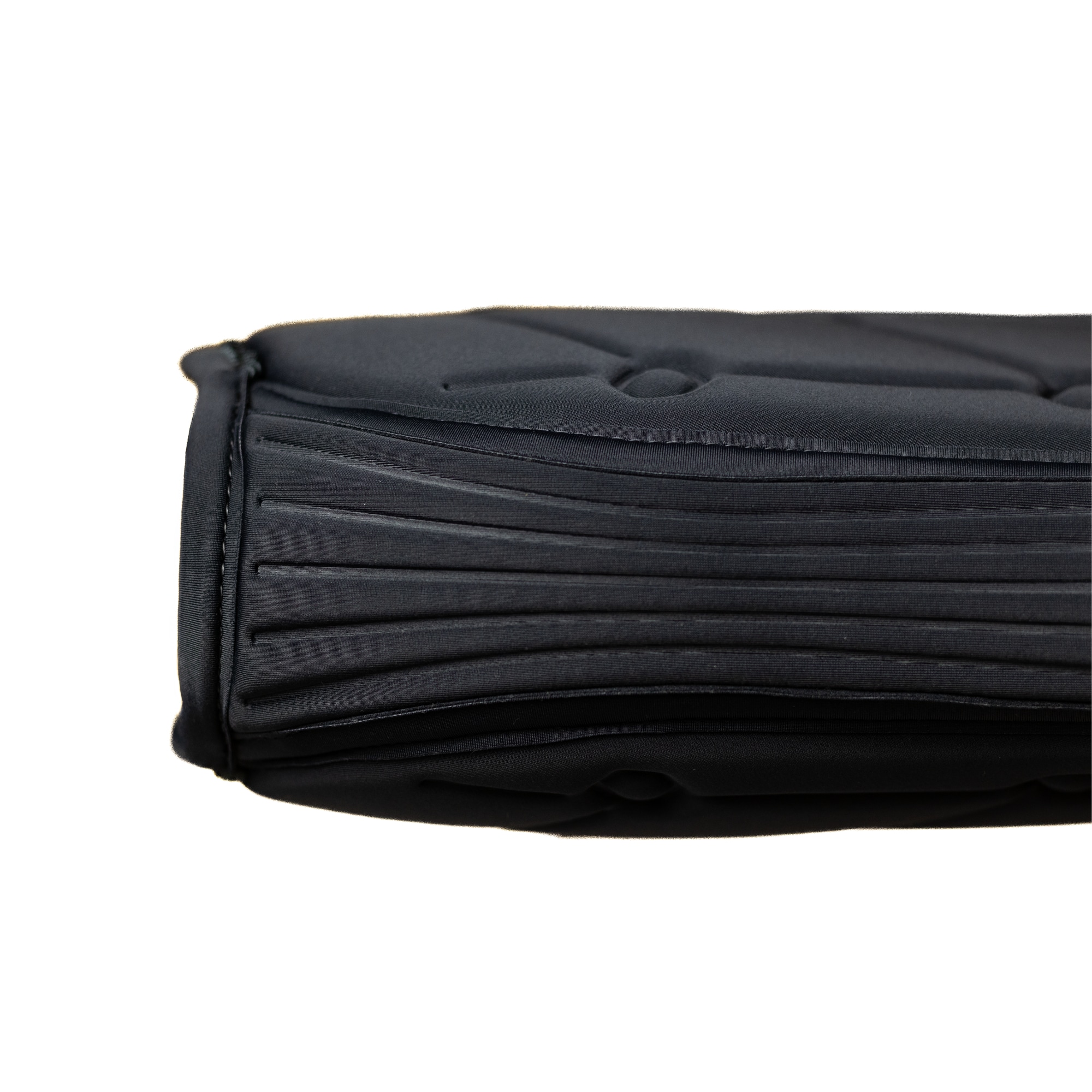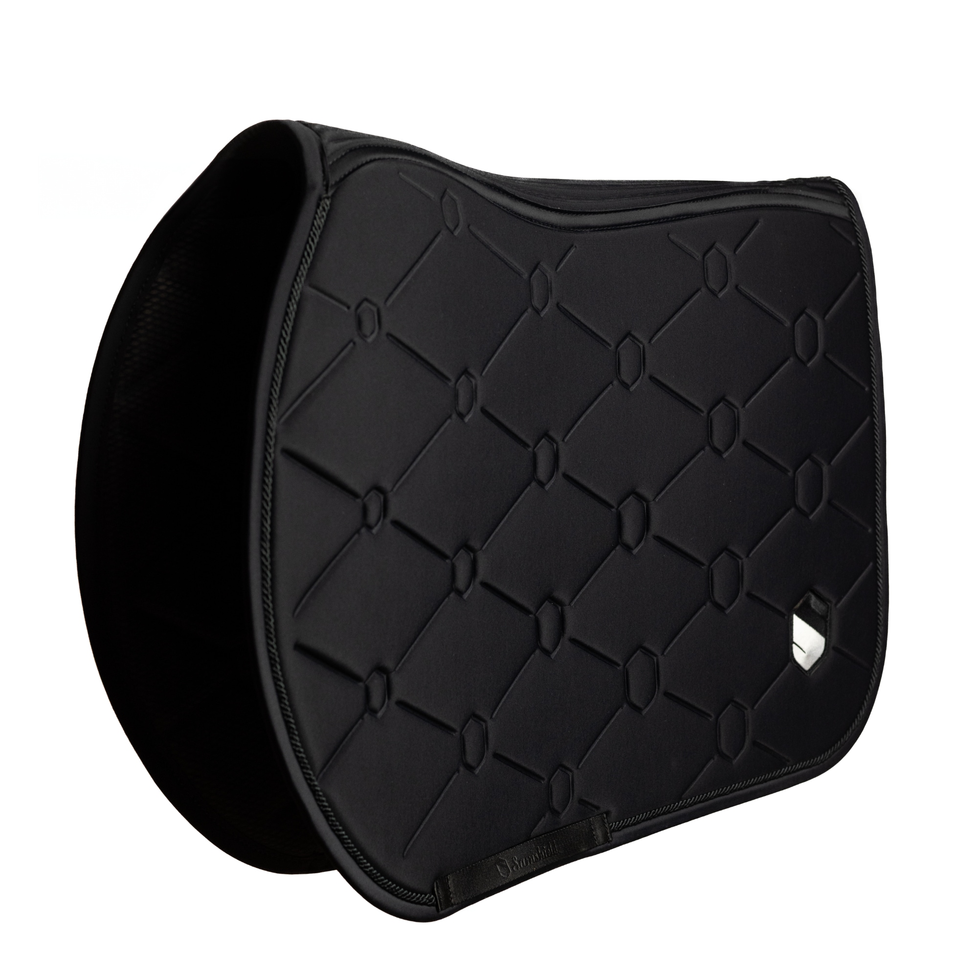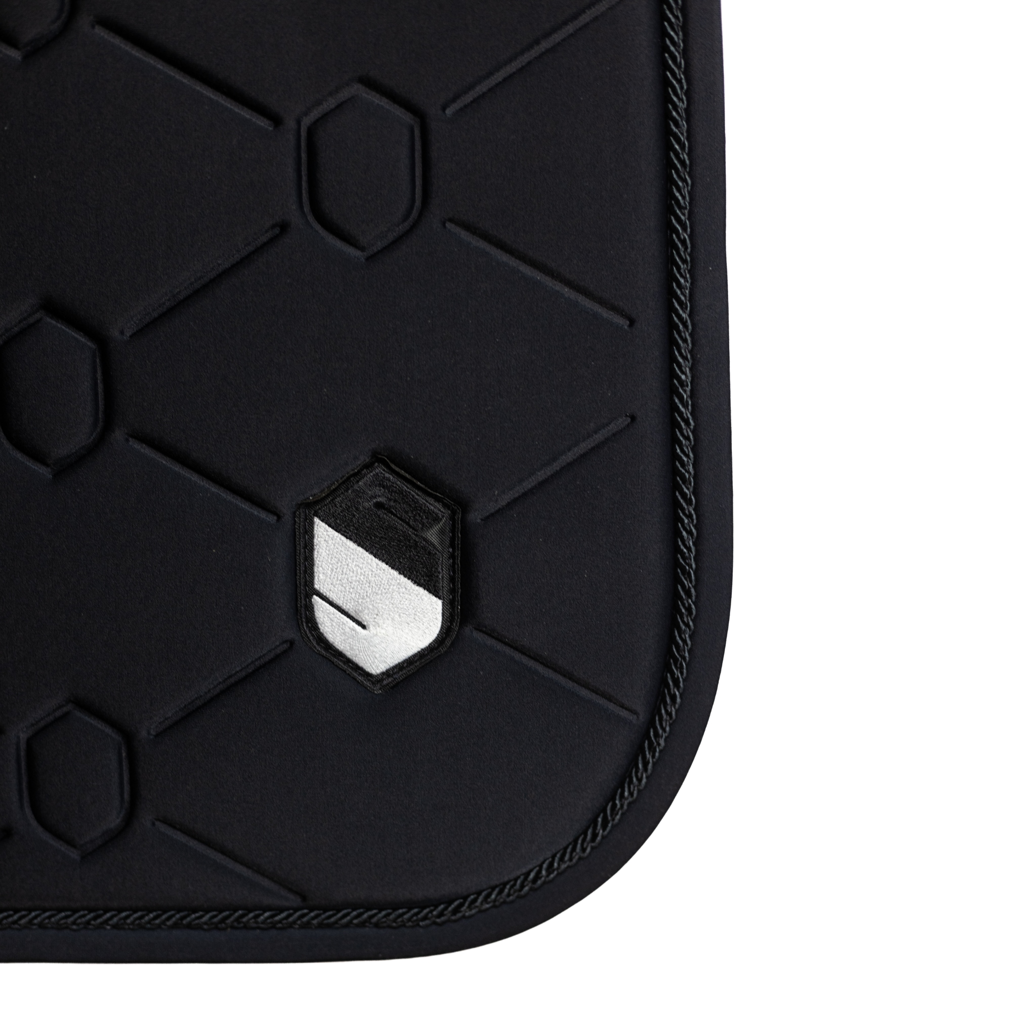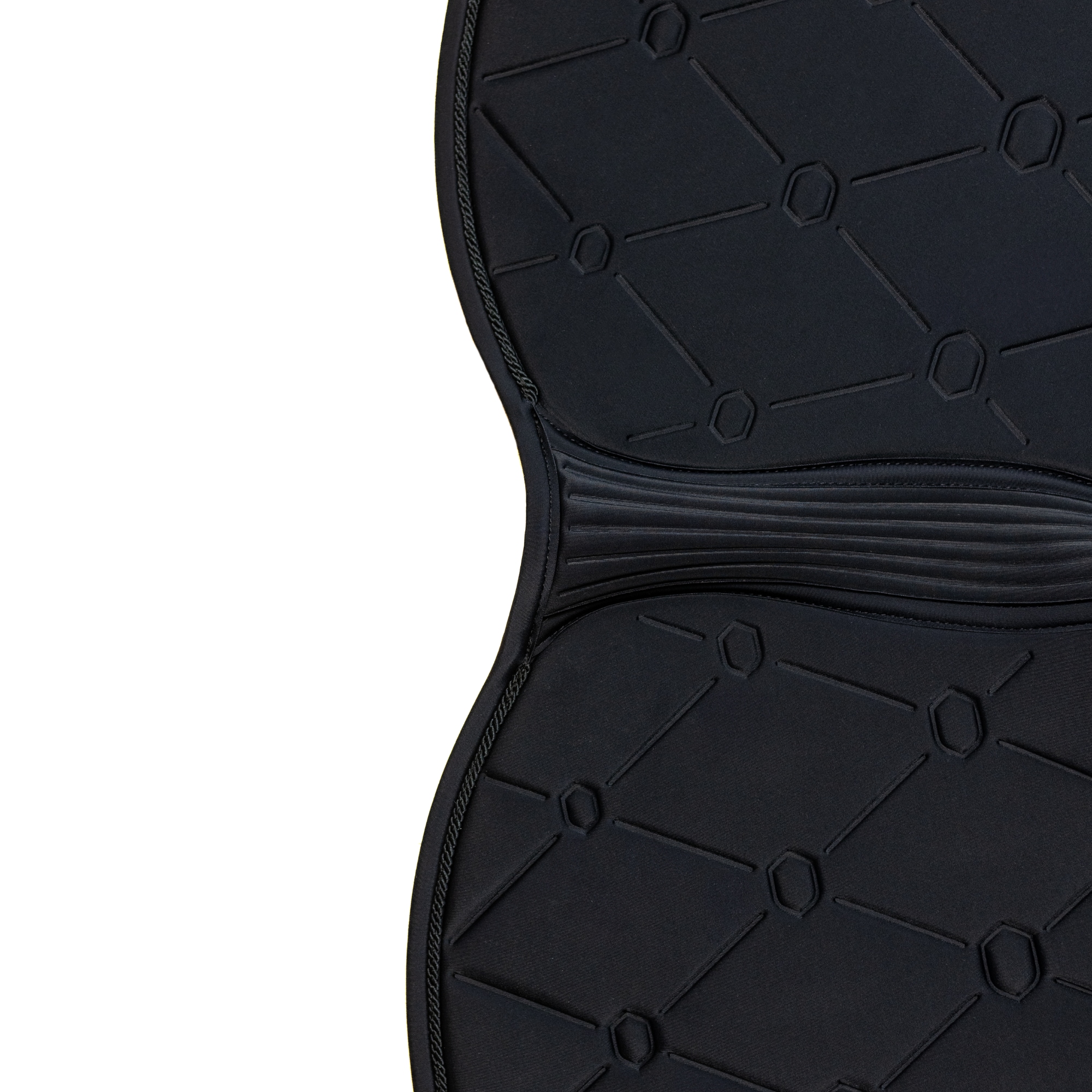 Den anatomiska passformen med naturligt mankurtag och sömlösa känsliga zoner gör att schabraket ligger mjukt och stabilt på hästens rygg utan att skapa tryck. Den tekniska konstruktionen med memory foam och intern greppyta säkerställer att sadeln hålls på plats även vid intensiva träningspass. Materialen är fukttransporterande och luftiga, vilket hjälper till att hålla hästens rygg sval och torr. Dessutom ger den högdensitetsskum en effektiv stötdämpning som skyddar ryggmuskulaturen.