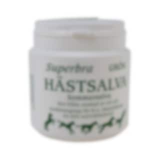 Superbra Hästsalva Grön är en naturlig bivaxsalva med olivolja, ringblomsextrakt, D-pantenol och eteriska oljor som mjukgör, skyddar och vårdar hästens hud. Med sin milda doft av citronella är den särskilt uppskattad under sommaren, då den både lindrar klåda och hjälper till att hålla insekter borta från utsatta hudpartier.