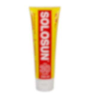 Solosun är mycket vattenresistent och fri från färgämne och parfym, vilket gör den lämplig att användas till nos och mule samt andra utsatta ljusa och sparsamt pigmenterade hudpartier.