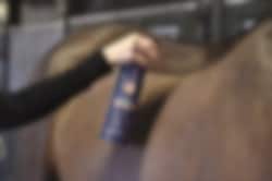 Var uppmärksam på att produkten ska hinna torka på hästens päls innan man sätter på hästtäcket igen.