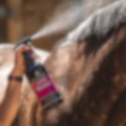 Spraya ett jämnt lager Canter Mane & Tail i manen och svansen och borsta sedan igenom med en borste eller fingrarna. Den finfördelande spraypumpen ger en jämn och kontrollerad applicering för ett optimalt resultat. Produkten kan användas på både torrt och vått tagel. Resultatet varar i upp till 2 veckor.