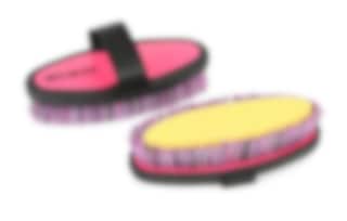 En smidig tvättborste för schamponering av häst . EZI-Grooming Grip Body Wash borsten har en svamp i mitten och borststrån längst kanten. Tvättborsten har en rem över handen, vilket gör det enklare att hålla i den medans du tvättar hästen.