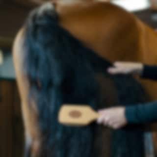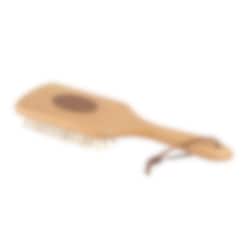 Red ut tovor och ge hästens man och svans en välvårdad finish med Borstiqs fyrkantiga träborste. De mjuka träpiggarna sitter i en flexibel gummiplatta som motverkar statisk elektricitet, och det ergonomiska handtaget ger dig ett stadigt och bekvämt grepp.