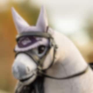 Denna miniatyrversion av LeMieux klassiska flughuva är tillverkad med samma omsorg och känsla för detaljer som originalet. Huvan har ett handvirkat mönster med mjuka mockaöron och dekorativ kant med flätad passpoal.
