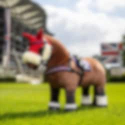 - Autentiska detaljer: orange tygel, tävlingsbett, avtagbar shadow roll och franska blinkers