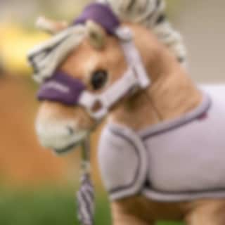 En miniatyrversion av LeMieux ikoniska Vogue-grimma, designad med samma omsorg och känsla för detaljer som originalet. Grimman är fleecefodrad över nos och nacke, med LeMieuxs broderade logotyp, justerbar rem och ett matchande grimskaft.