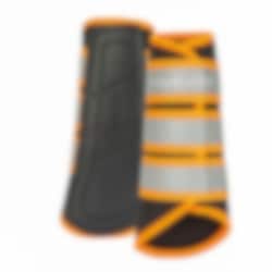 Reflexbenskydd i neopren för häst. Ge din häst extra synlighet och skydd med dessa slitstarka neoprenbenskydd med reflexdetaljer. Orange