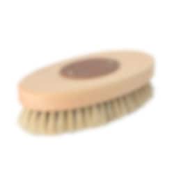 Liten och smidig borste särskilt framtagen för känsliga områden som huvudet, benen och andra platser där huden är extra tunn. Borsten har en stabil rygg i äkta bokträ och är helt fri från rem, vilket gör den lätt att hantera även för mindre händer.