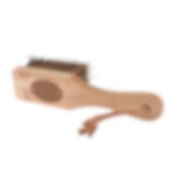 Denna lite grövre borste är försedd med ett handtag i slitstarkt lövträ som ger ett stadigt och bekvämt grepp samt en läderrem som gör det enkelt att hänga upp borsten när den inte används.