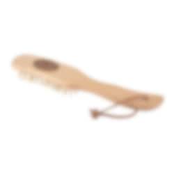 Borsten är perfekt för att reda ut tovor och ge en silkeslen, välvårdad finish. Det ergonomiska bokträhandtaget ger ett stadigt grepp, vilket gör borstningen bekväm för både dig och hästen. Dessutom kan borsten användas för att rugga upp pälsen före ryktning eller för en avslappnande massage.