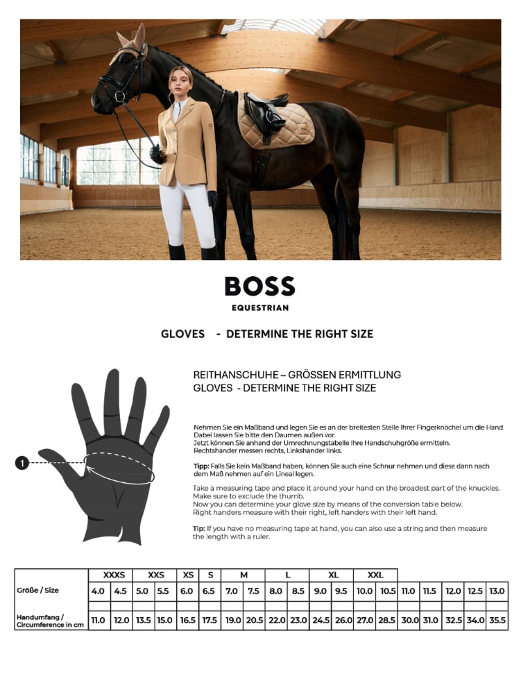 Boss Ridhandske Hybrid från Boss Equestrian är ridhandskar i syntetiskt belagt tyg med oslagbart grepp, säker passform och tidlös design.