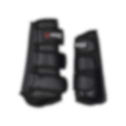Svarta snygga och prisvärda förstärkta dressyrstrykkappor från Catago. Dessa dressyrsenskydd har sin förstärkning utmed baksidan av skenan, vilket ger ett bra slagskydd. 4-pack