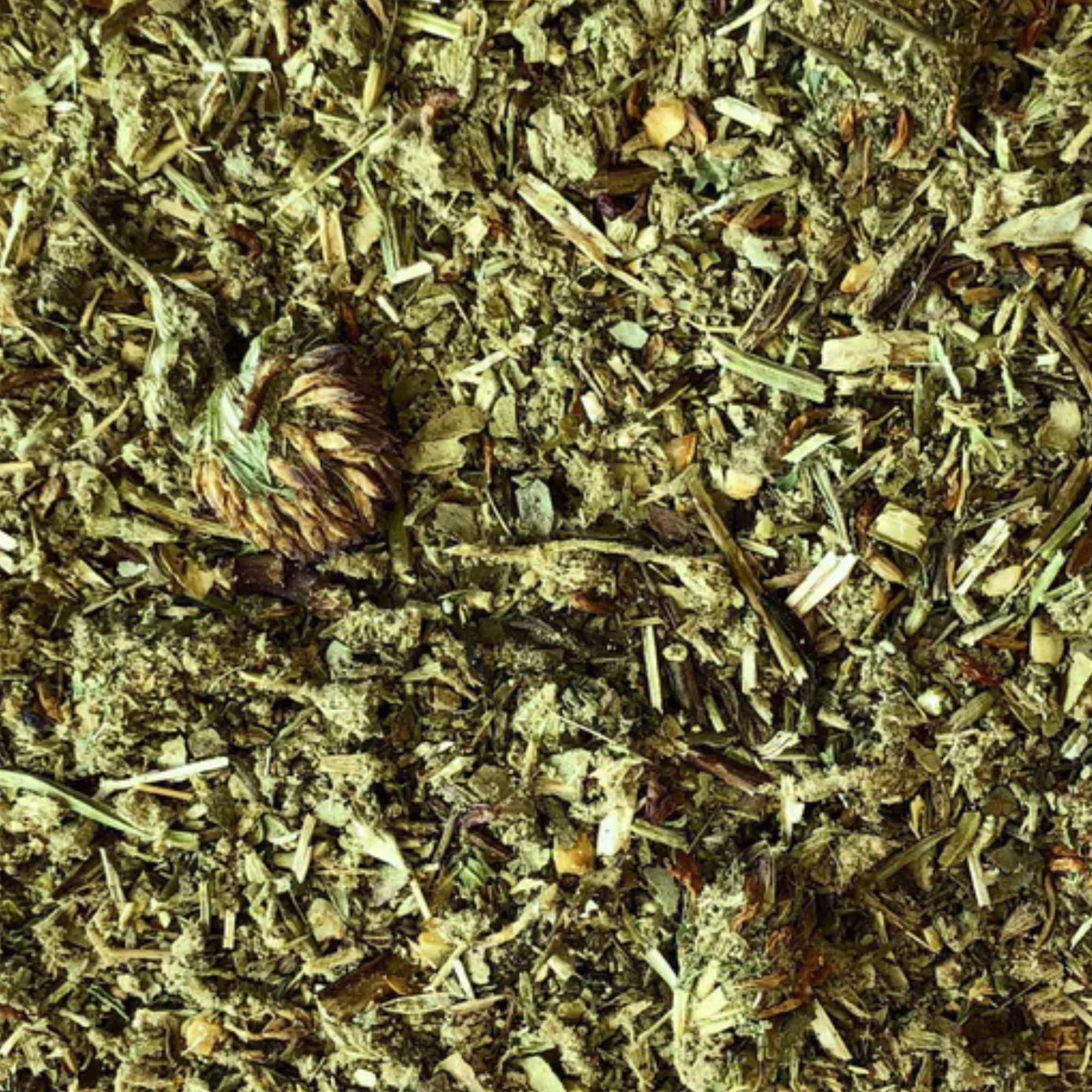 - Kransborre, Tussilago, Isop och Rödklöverblomma - hjälper till att stödja friska luftvägar.