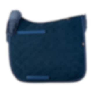 Fårskinnsschabraket är i marin med fårskinn i blå och en vacker passpoal längs med schabrakets kant.