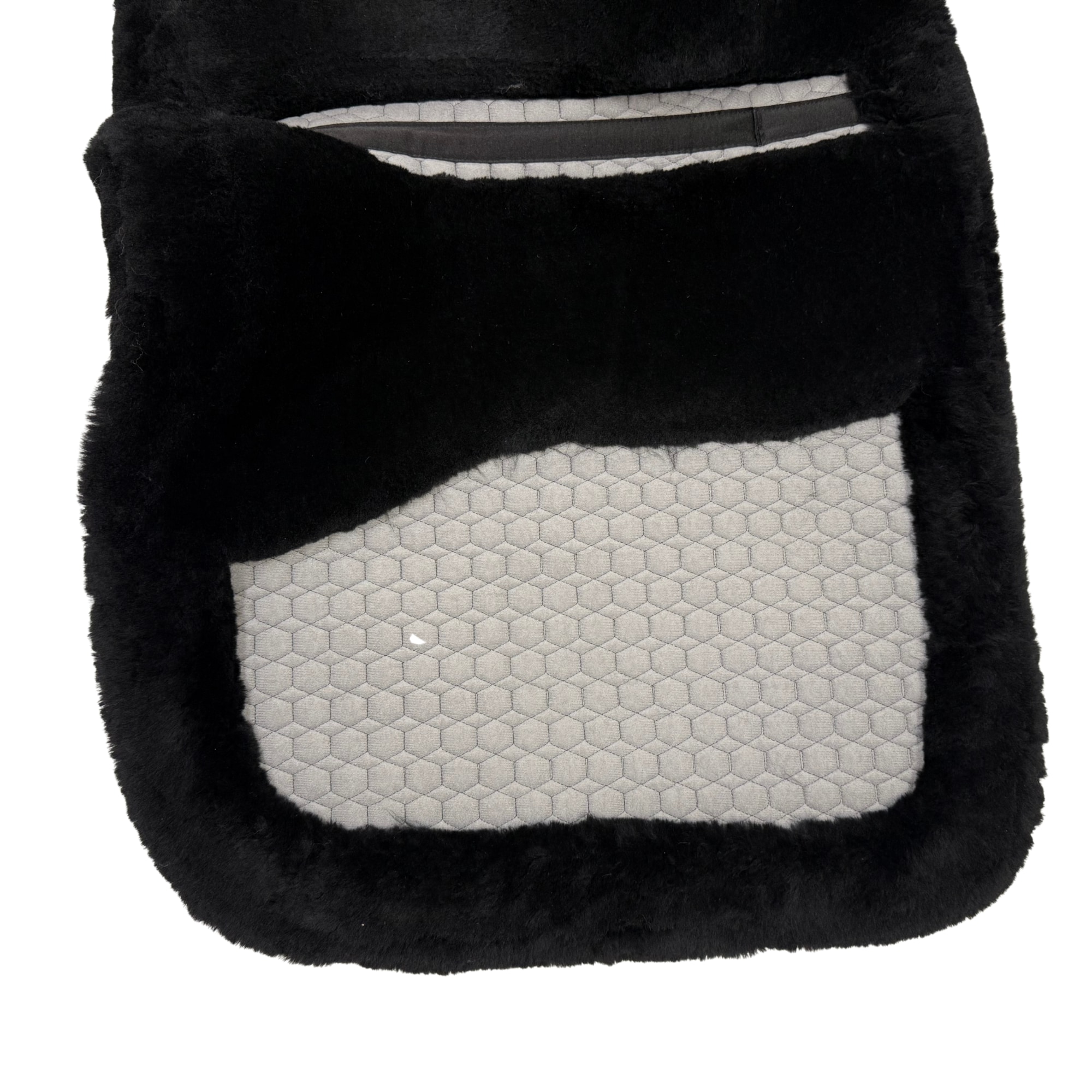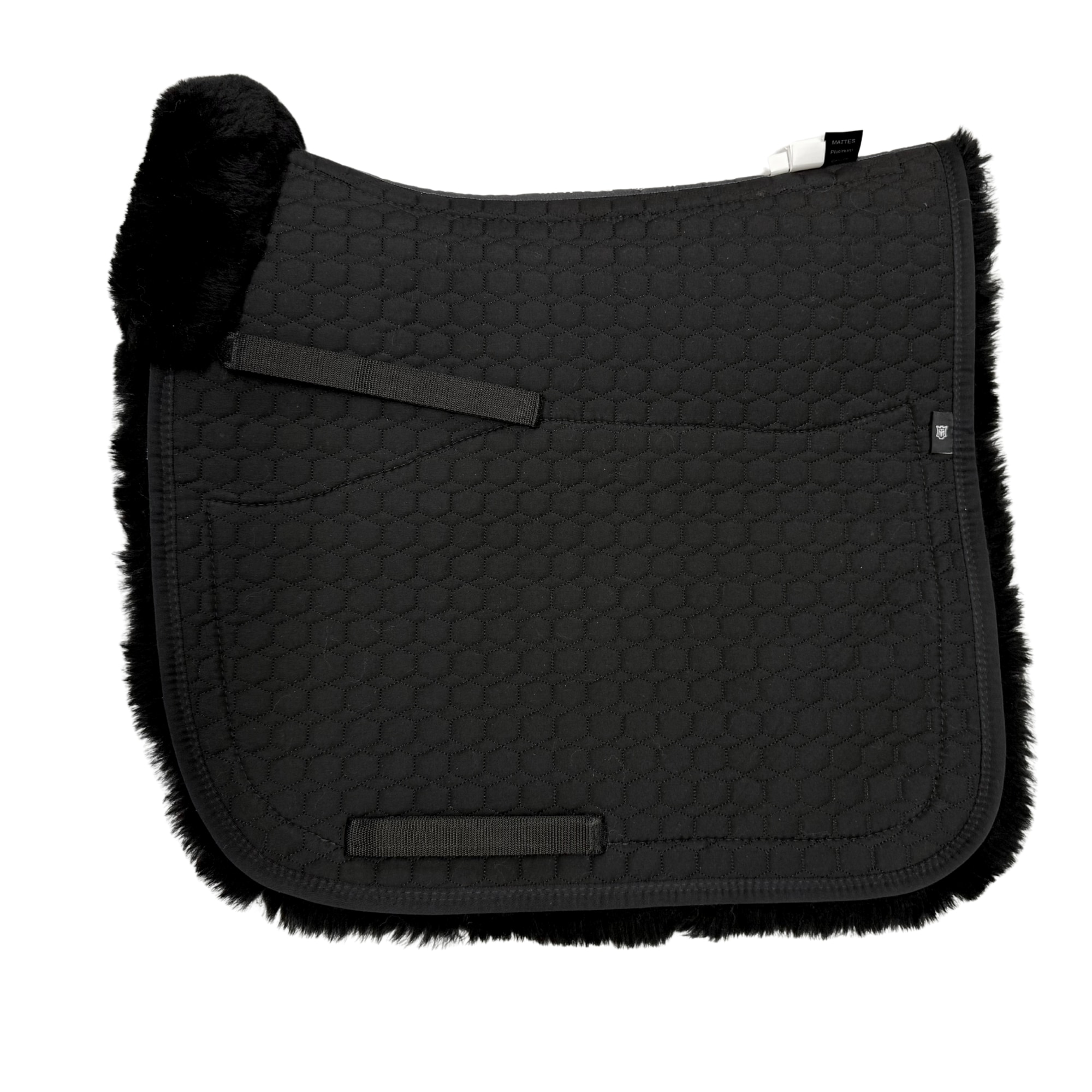 Fint svart dressyrschabrak från EA Mattes med kantens insida av fårskinn i härlig kvalité.