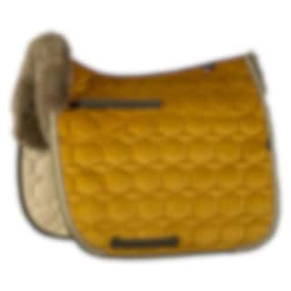 Detta är ett fårskinnsschabrak av högsta kvalitet, som har integrerad fårskinnspadd inuti och dess kanaler löper på vardera sida om hästens ryggrad samt runt sadelns framvalv. Fårskinnet hjälper till att fördela trycket och transportera bort fukten från hästen. Ovansidan på schabraket är i härlig velvet.