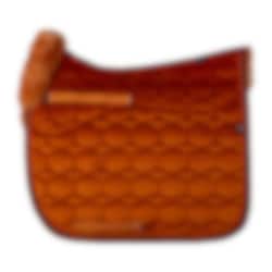 Detta är ett fårskinnsschabrak av högsta kvalitet, som har integrerad fårskinnspadd inuti och dess kanaler löper på vardera sida om hästens ryggrad samt runt sadelns framvalv. Fårskinnet hjälper till att fördela trycket och transportera bort fukten från hästen. Ovansidan på schabraket är i härlig velvet.