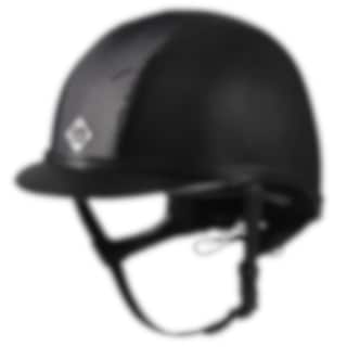 Ayr8 Plus Leatherlook Ridhjälm från Charles Owen är en lågprofilshjälm med konstläder på sidopanelerna och nät i mitten av ridhjälmen.