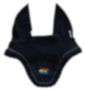 Equilines Flughuva Kim har en stilren design med E-logga i Rainbow samt Equiline-logo på huvans vänstra öra. Huvan skyddar hästens öron från insekter under sommaren och är en snygg detalj för träning och tävling.