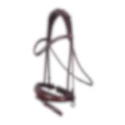 Hannibal dressyrträns från by Equality Line i exklusivt italienskt läder med pullback-nosgrimma, mjuk padding och böjt pannband med silvrigt klinker.